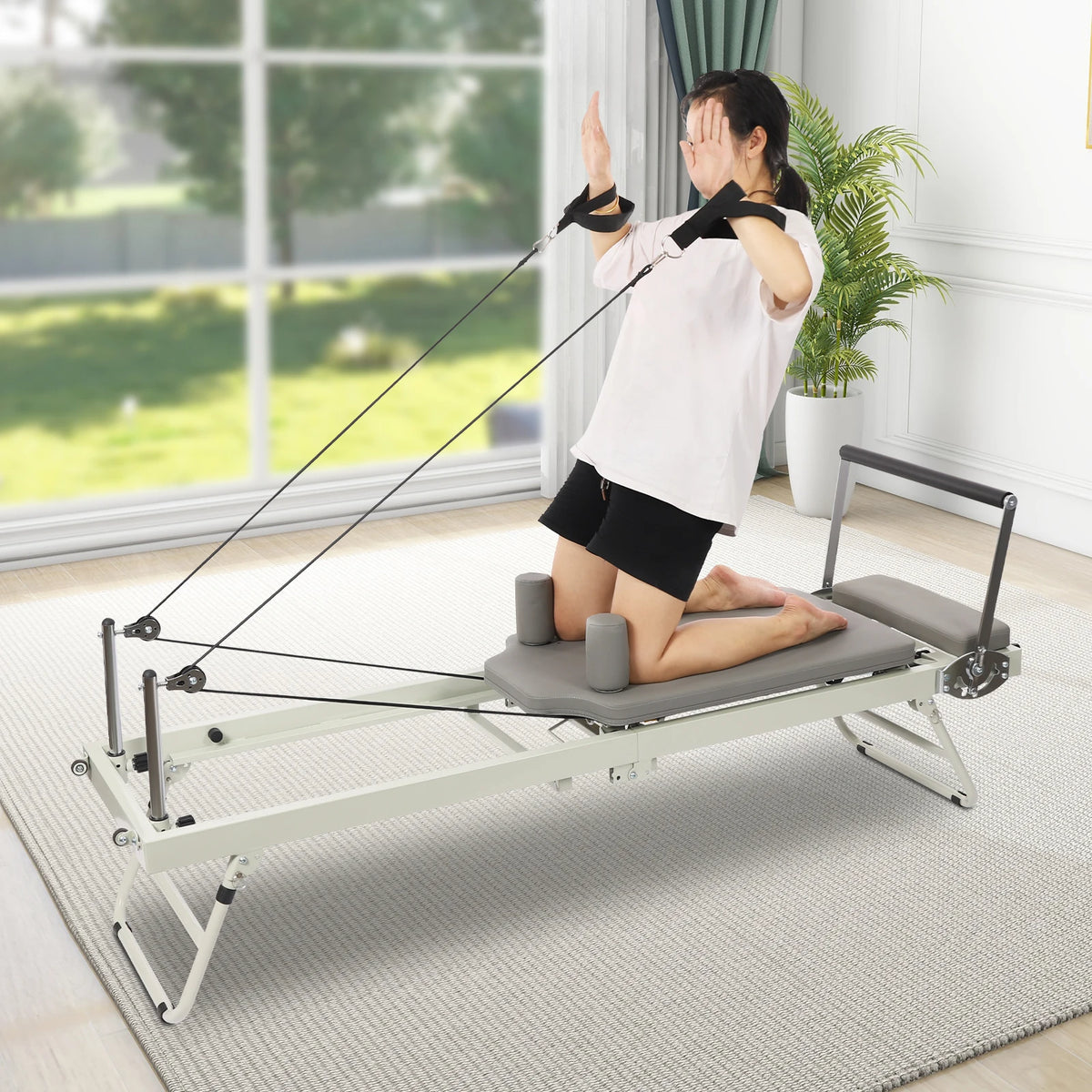 Foldable Steel Pilates Reformer – Black/Grey - Grey / United States